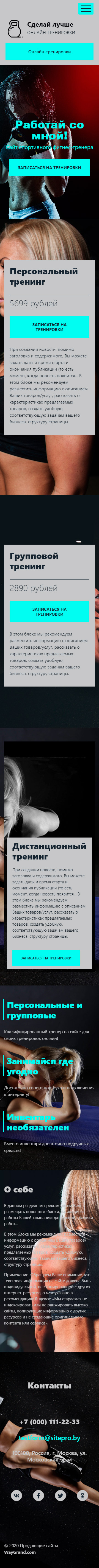 Закажите готовый продающий сайт лендинг #1955203 в Бердске за 1-3 дня «под ключ»: свёрстан, отрисован и готов к рекламе. Тематика шаблона «Фитнес тренер».
