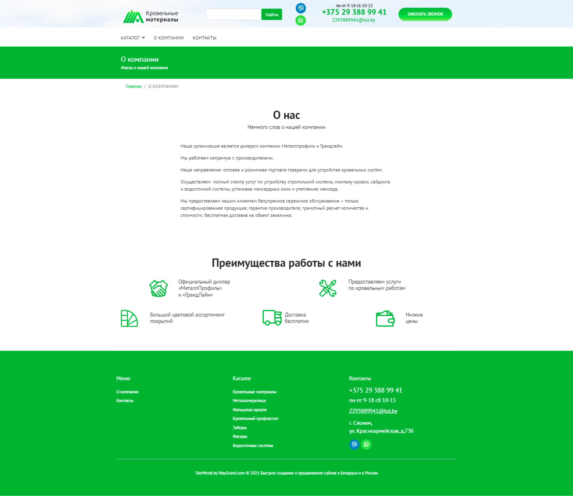 Закажите готовый продающий сайт визитка #324 в Бердске «под ключ» на waygrand по выгодной цене: свёрстан, отрисован и готов к рекламе. Тематика шаблона «Кровельные материалы».