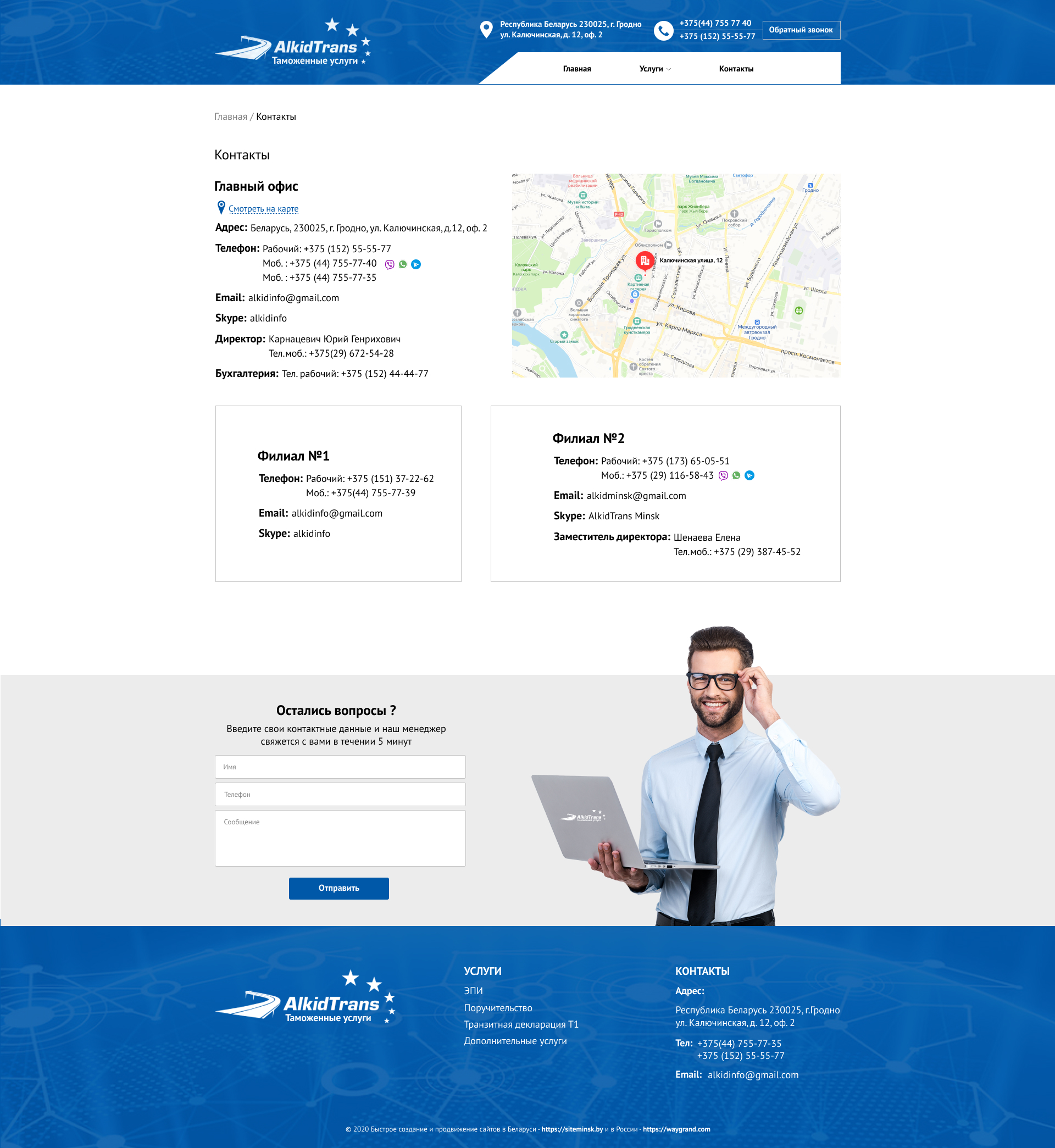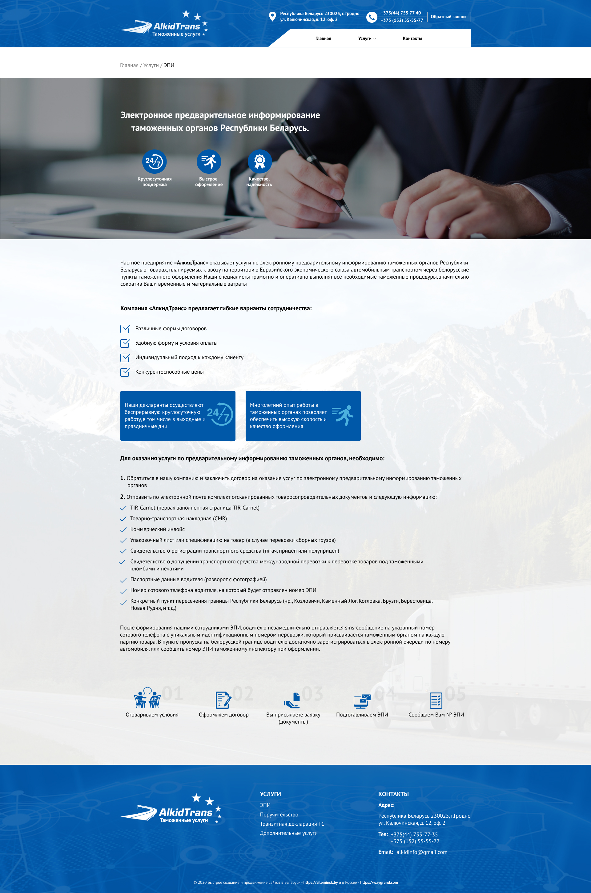 Закажите готовый продающий сайт визитка #234 в Бердске за 5-7 дня «под ключ»: свёрстан, отрисован и готов к рекламе. Тематика шаблона «Таможенные услуги».